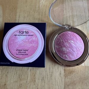 Tarte Shape Tape Glow Blush in luminous pink shade. Perfect for adding a natural glow. The super-soft, silky powder blush glides on smoothly and lasts for hours. It delivers a fresh and pigmented flush of color with buildable coverage that blends seamlessly -- no harsh lines or clown cheeks. Brand new in the box. Never been used. Brush not included.
