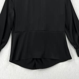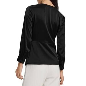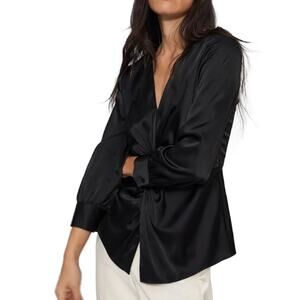 THEORY Long Sleeve Twist Blouse Women Size 12 Black Soft Satin Shirt Top Classic