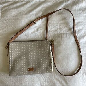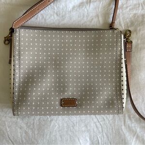 Fossil Emma Small Crossbody Bag Purse Hearts Grey and White
