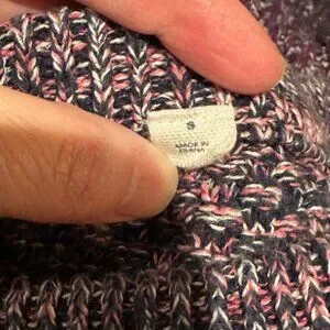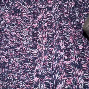 Gap Women's Crochet Sweater in size S. The sweater is navy, pink, and white. Please see the last photo for an up close image of the print and color. It's in excellent preowned condition with no holes, rips or stains.