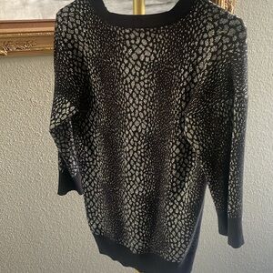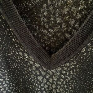 This elegant Michael Kors women's sweater features a striking black and silver design, perfect for adding a touch of sophistication to your wardrobe. Ideal for both casual and formal occasions. Gorgeous metallic shimmer to dress up or wear casual. Looks great with blue jeans. Fits more like a small p2p 20” length 26”