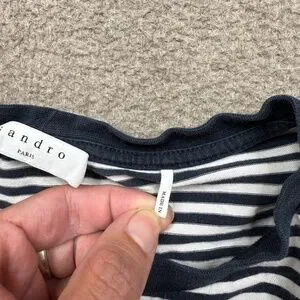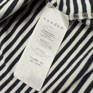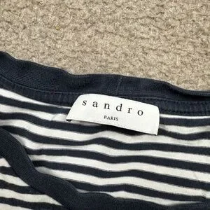 Sandro Paris Shirt Womens Medium M Black Short Sleeve Striped Crop
