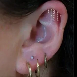 Tagged bvla for visibility, solid 14k yellow gold threadless, press fit style by invictus. Bar is slightly curved so it can be a hidden helix or a vertical helix. Will be sterilized before being shipped