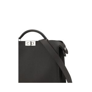 Fendi Leather Peekaboo Handbag with Adjustable Strap Women Black
