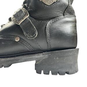 Metal Harley logo on the sides and embossed Harley Davidson on the heel.
