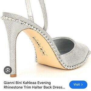 Elegant silver slingback heels adorned with rhinestones. Perfect for special occasions. Worn once- great condition, just a little too small for me!
