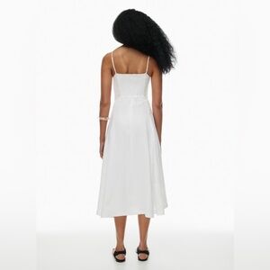 This is a squareneck fit-and-flare midi dress with a smocked back. It's cut from airy 100% organic linen with a subtle texture.