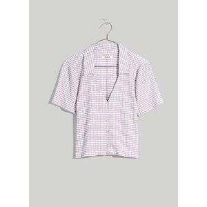 Made of a crinkled cotton-blend with a touch of comfy stretch, this cropped top has an open point collar and buttons down the front. A little plaid moment to pair with your fave high-waisted jeans.Crop length: designed to hit between the waist and high hip.Body length from high point of shoulder: 19 1/4".Polyester/cotton/elastane.Do Well: by buying cotton products from Madewell, you're supporting our investment in Better Cotton's mission to help cotton communities survive and thrive while protecting and restoring the environment.This product is sourced through a system of mass balance and therefore may not contain Better Cotton.Machine wash.