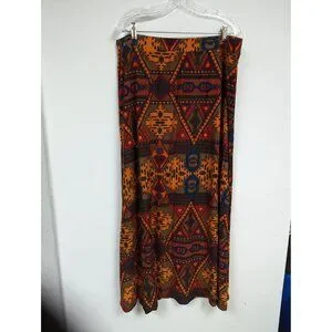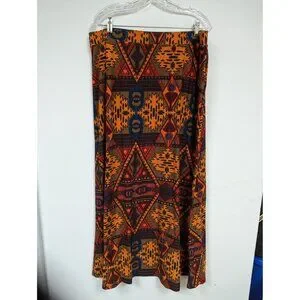 Catos Size XL Skirt Maxi Orange Brown Red Blue Aztec Design Soft