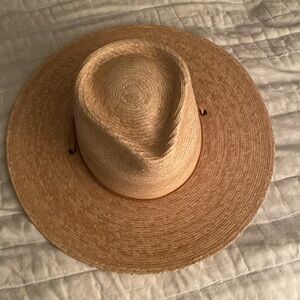 Crafted with exotic Guatemalan Palm Straw the River is a sturdy, natural colored straw hat shaped into a teardrop fedora crown + wide, flat brim that offers amazing sun protection. Trimmed with a brown, genuine leather chinstrap with a leather slider, the River stays put on beach days + drips elegance when you dress it up for brunch.