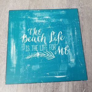 This is a wonderful painted ( rustic, white washed look) metal wall art features the saying.... "the beach life is the life for me" Gorgeous deep turquoise color! Never used