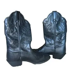 Men's Tony Lama Stallion BB2024L Handcrafted Black Cowboy Boots - Size 8.5B some peeling on the piping but otherwise great condition