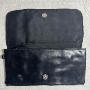 Elegant black vegan leather clutch with stylish rhinestone accents. Cute ruffled design. Perfect for any occasion. Has a hook to attach a strap if wanted/needed. Magnetic snap closure to close it securely.