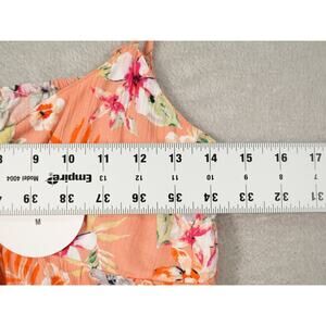 Pink Rose Womens Orange Crop Top Sleeveless Floral Tie Knot Smocked Size M