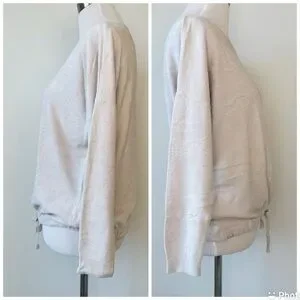 Barefoot Dreams Cozy Chic Ultra Lite Pullover Lounge Top Sweater, size Small. Excellent preowned condition. Color: Stone. Neutral, soft, marshmallow white color. Soft, ultra plush microfiber 71% nylon, 29% viscose. Resists pilling and shrinkage. Crew neckline. Dropped shoulder. Front functional self-fabric drawstring tie. Measures armpit to armpit 22.5”; shoulder to hem 22”; sleeve length 16” from seam. Smoke free. Tags: lounge easy comfy cozy warm weekends Box
