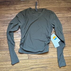 Olive color, dune swim top. Crop. Slight ruche on sides. New with tags, never worn. Tight fit, perfect for swim or surf.