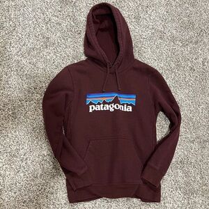 Men’s Patagonia P-6 Logo Uprisal Hoody maroon red color casual wear preowned