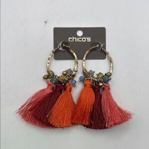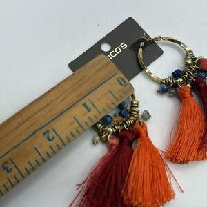 NWT Chicos Multicolor Tassel Hoop Drop Dangle Earrings Boho Hippie Orange Pink