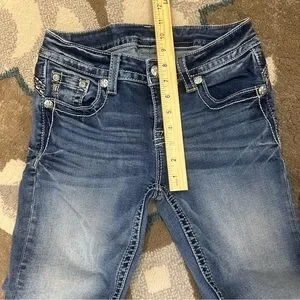 Miss Me Hailey Skinny Jeans Size 26. These jeans are in good pre-owned condition with overall signs of wear. There is a small spot near the bottom hem of the left leg as seen in the photos. Please see all photos for details and approximate measurements and feel free to ask questions!