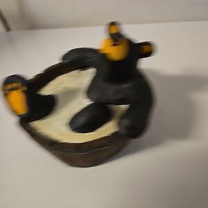 The Bearfoots Jeff Fleming BEAR NAKED Wash Bath Tub Figurine is a vintage black bear figurine made of composition material. Designed by artist Jeff Fleming, this original figurine features a bear bathing in a wash tub, part of the Big Sky Collector series. It is a single unit item from the 1990s, showcasing the theme of animals in a playful and whimsical manner. This collectible piece would make a charming addition to any bear figurine collection.