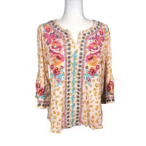 Savanna Jane Top Womens Size Small Embroidered Bohemian Hippie Festival Casual