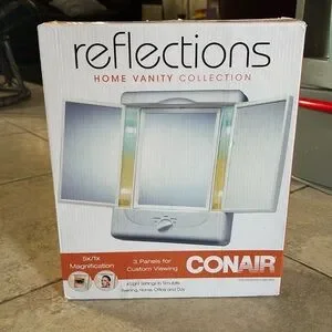 I wish I had room and use for this! The box is a little damaged, but it’s from opening it and making sure it works. The lighting is beautiful. You have a great mirror in the middle and then two on the side. I love how you can adjust the lighting. I just wanna give to somebody that would really love this and more into make up!! 🥰