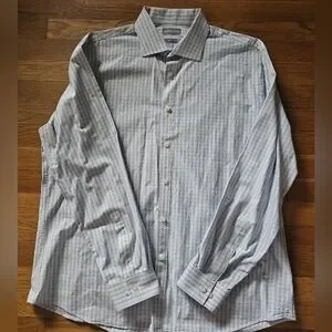 Michael Kors Slim Fit Blue Tan Button Down Dress Shirt Mens Size XL 17-1/2 34-35