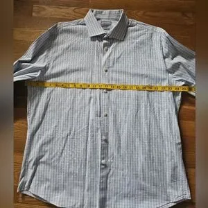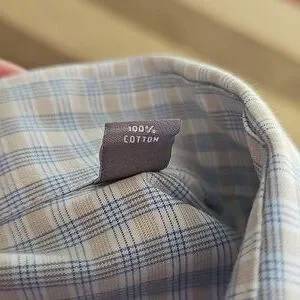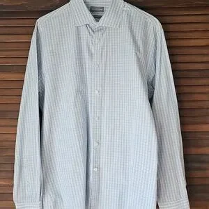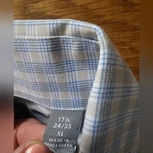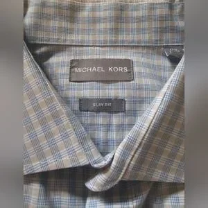 Michael Kors Slim Fitting Long Sleeve White with Blue & Tan Checkered Plaid Print Button Down Dress Shirt or Business Casual Shirt, Men's Size XL, 17-1/2" Neck 34-35, See the pictures showing the measurements, Quality Made, Spread Collar, Button Cuffs, Soft 100% Cotton, No Pockets, Wear with or Without Neckwear, Classic Plaid Style with Modern Slim Fit: Featuring a timeless plaid pattern and a modern slim fit cut, this versatile shirt flatters a variety of body types. It transitions effortlessly from casual weekend outings to more polished, semi-formal occasions, Designed with transitional seasons in mind, ideal for spring and fall weather, No Flaws No Issues, Excellent Pre-owned Condition โฃ๏ธ ๐