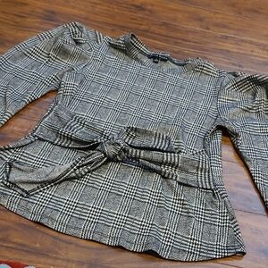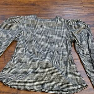 Elevate your style with this chic plaid puff sleeve top. Featuring a classic black and gray pattern, this top is perfect for any occasion. The stylish design adds a touch of elegance to your wardrobe.