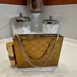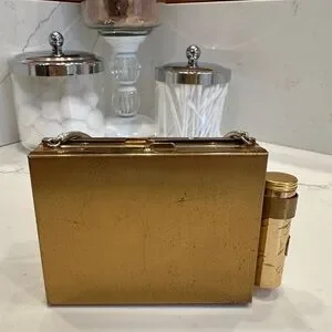Vintage Art Deco 50’s Gold Toned Cigarette, Lipstick, Compact Case with Comb.