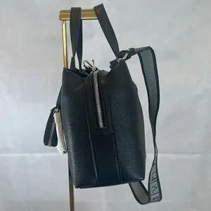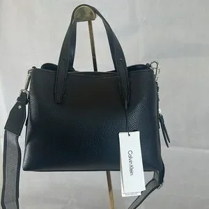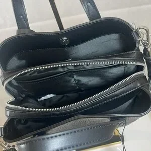 CAVIN KLIEN , NWT , Black Color with Zipper closer , inside the Zipper has Three pockets, one pocket has a Zipper, The Bag has three side , Two side close with snaps , the Middle has Zipper, The Stripe is adjustable,