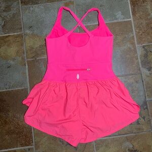 The perfect one-and-done running outfit, this easy romper features a slim-fitting top with a cooling cutout at the center paired with airy retro-style shorts.