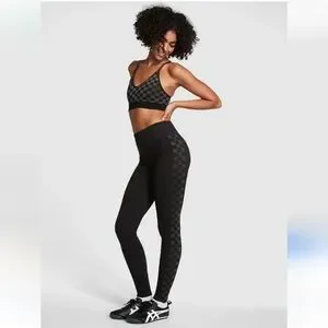 VS PINK SEAMLESS SPARKLE CHECKERED LEGGING AND BRA SET XL