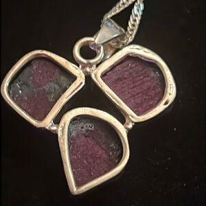This elegant silver pendant necklace features stunning mix of GREEN AND RUBY COLORS