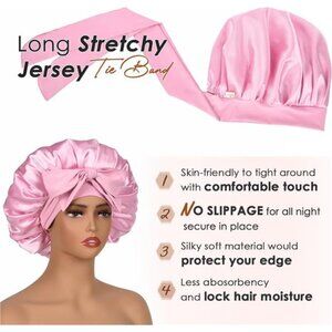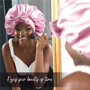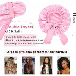 Silk Bonnet for Sleeping Women Satin Bonnet Double Layer Satin Lined PInk