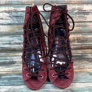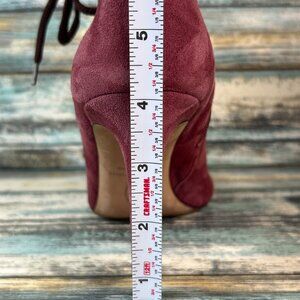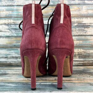 SJP Sarah Jessica Parker Womens 10 Booties Dress Formal Lace Up Open Toe Mauve Pink Suede.