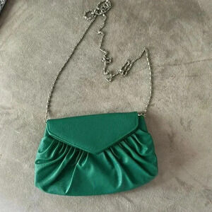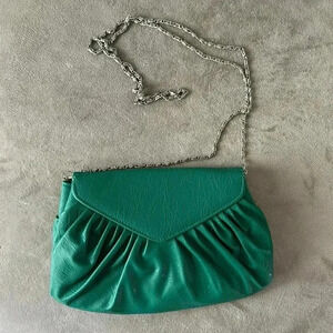 Cute green leather clutch hand bag, perfect for a night out. Light weight.