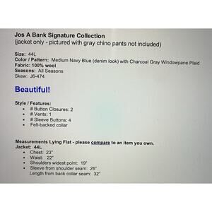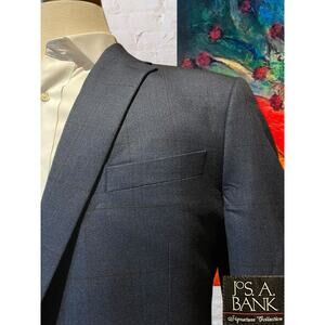 Jos A Bank Signature Collection Blazer 44L Blue Plaid Wool Sport Coat Jacket