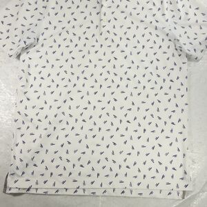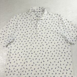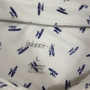 Johnnie O Polo Shirt Mens Large White Blue Golf Surf Logo All Over Print 4 Way
