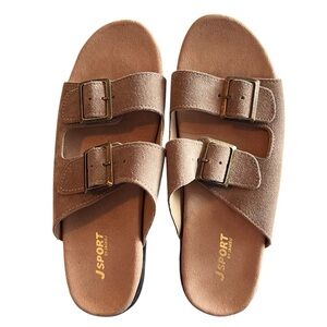 J Sport Jambu Carina Women's 2 Buckle Suede Slip On Slides Flip Flops Tan 8.5 M