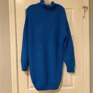 EUC Vero Moda sweater dress in royal blue, size medium. This is adorable and oversized. Please note, the front has larger crochet holes so you may be able see thru a bit depending on your size. Please see picture.