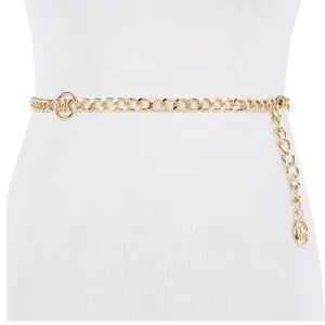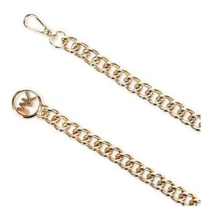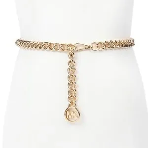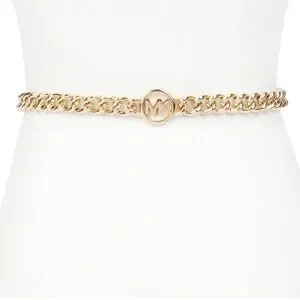 Elegant gold chain belt with MK logo charm. Perfect for adding a touch of luxury to any outfit.