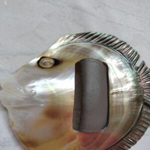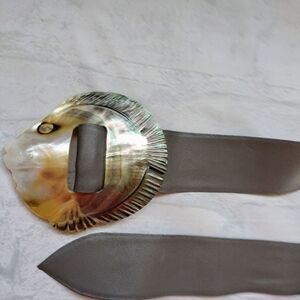 Elegant Fish Mother Of Pearl Design Belt with Iridescent Gray Leather Retro Vtg