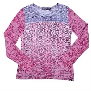 PrAna Lottie Lightweight Pink & Purple Jersey Knit Burnout Tee Size S