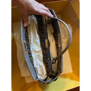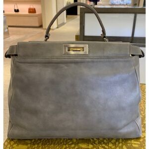 Fendi Grey Leather Lined Medium Peekaboo Top Handle Bag Turn Lock Closure Italy