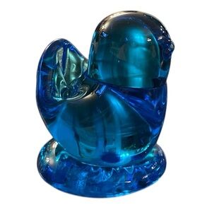 Signed 2001 Vintage Cobalt Glass Blue Bird of Happiness Baby Sparrow Song Bird