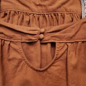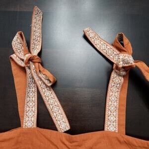 Anthropologie Etude Embroidered Tank Top in great pre-loved condition! Burnt orange color with embroidered tie straps and keyhole back.