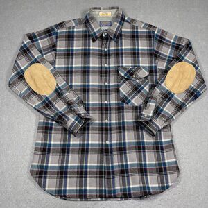 VTG Pendleton Shirt Large Mens Wool Flannel LOBO Plaid Long Sleeve Elbow Patch