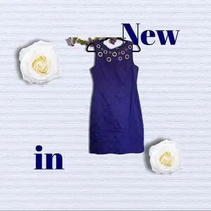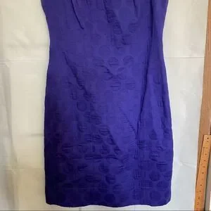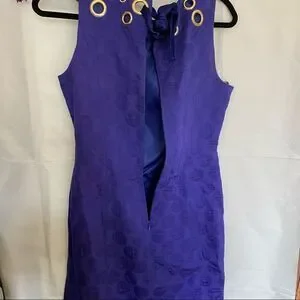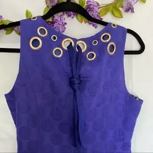 Just Taylor Purple Grommet Polka Dot Ribbon Sleeveless Dress, lined sheath. Taylor Sleeveless Sheath Dress