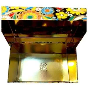 Adorable vintage floral tin recipe box from the 1960’s. In good condition considering its age - there are some scrapes, there’s some old sticker residue on the front corner (didn’t want to attempt to remove & end up damaging), and the top sits a little funky on its hinges (not loose though). Stamping says ‘J Chen & Co. Made in USA’ - Comes with cute little vintage invite, too!